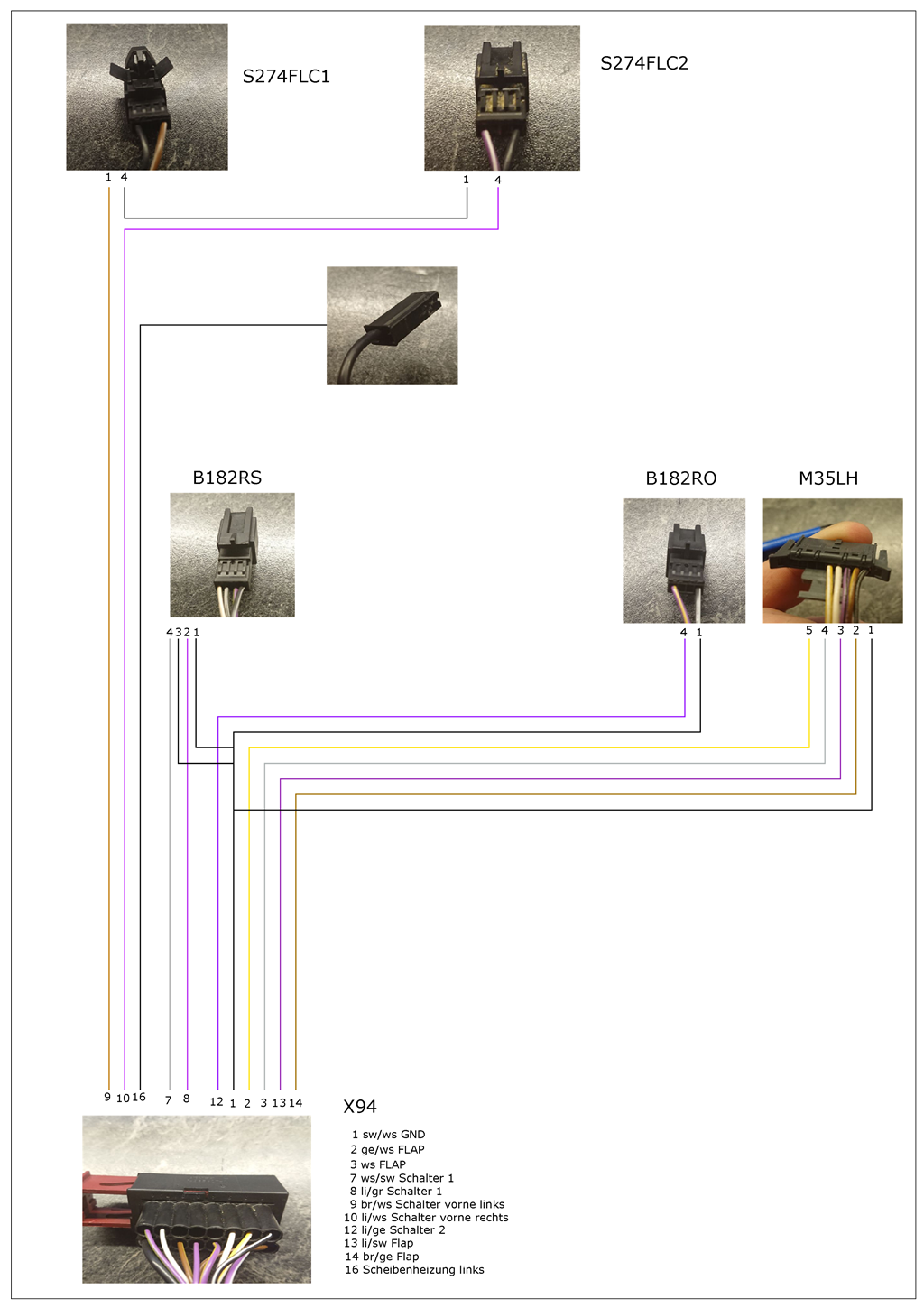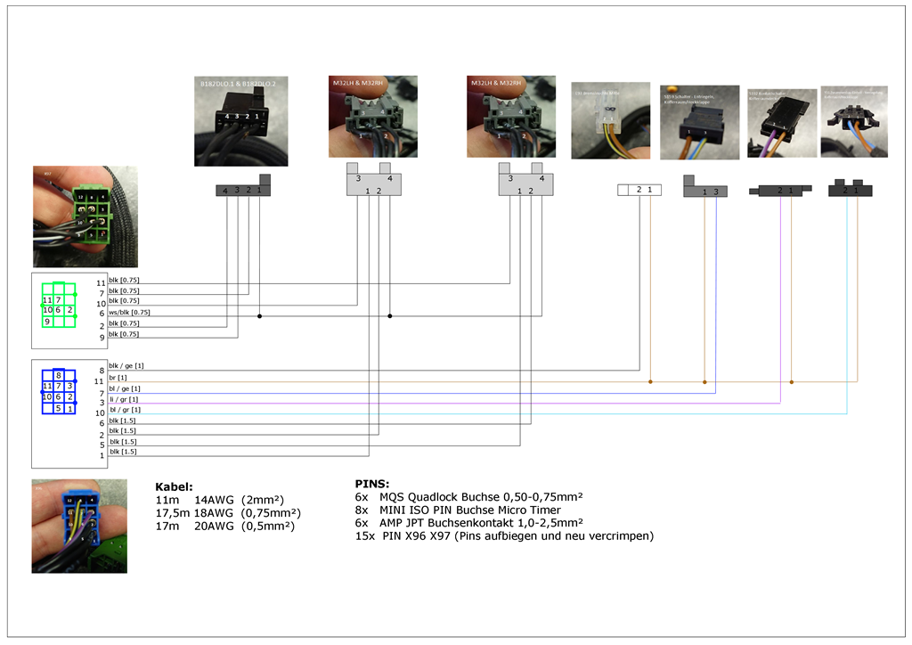 Oder ihr baut die Kabelbäume selbst. Steckkontakte auspinnen, Kabel und Pins erneuern und austauschen. Infos zu Steckern, Kabelbfarben, Pins usw. findet Ihr hier: