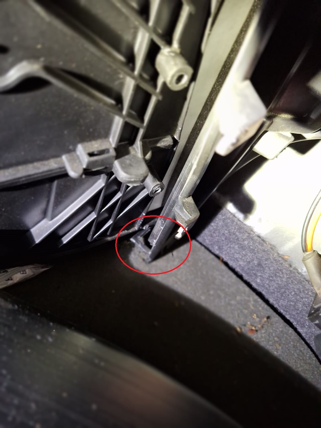 Die Abdeckung ist zusätzlich an der oberen und unteren Seite eingehakt in eine Nase. Damit man die Abdeckung komplett entfernen kann, ist der an der unteren Seite (zum Fußraum) befindliche Verriegelung mit dem Finger ein wenig zu öffnen, so das diese über die Nase sich ausklinken kann.