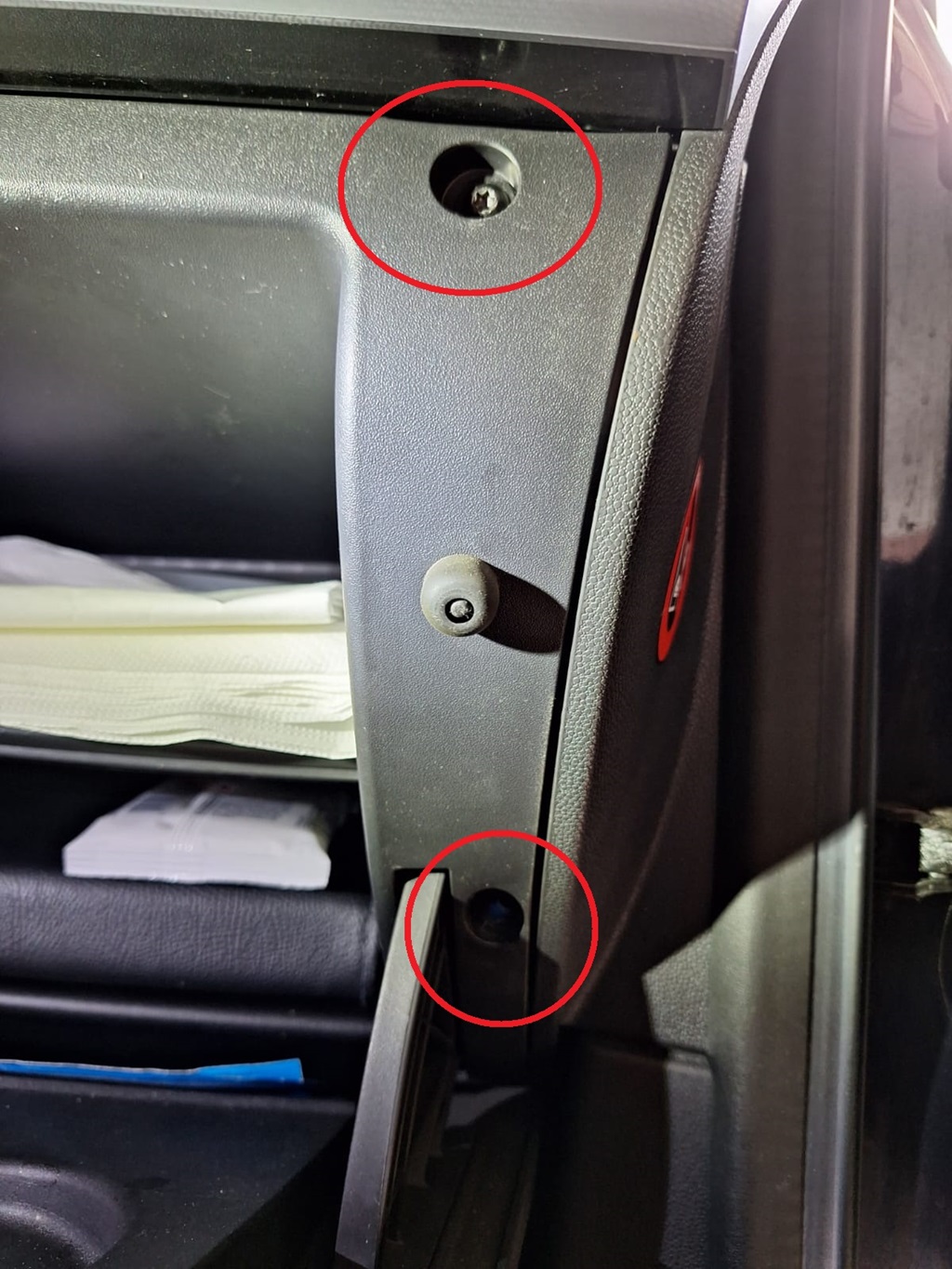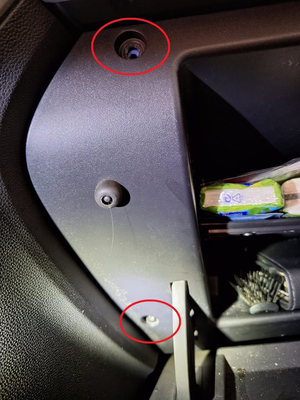 1. Das Handschuhfach ist mit 4 Torxschrauben fixiert. Zunächst die beiden unteren Schrauben lösen, dann die oberen beiden und entfernen.