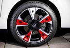 April 2019: Die Innenausstattung wird drei Stofffarben und perforiertem Leder in schwarz zur Auswahl haben. Bei den Farben stehen als Basisfarbe Power Orange zur Verfügung. Dazu mit Aufpreis Schnee Weiß (uni), Mondsteingrau, Quarz Silber, Diamant Schwarz und Chilli Rot (alle Metallic). Ergänzend zu den Vorgenannten Farben bleiben Nautic Blau und Perl Blau (alle Metallic) dem Corsa-e vorbehalten. Abweichende Dachfarben sind in Weiß und Schwarz (Unilack) wählbar. Neben den 15 und 16 Zoll Stahlfelgen werden 16 und 17 Zoll Alufelgen verfügbar sein. Der Lochkreis wird 4x108 sein.